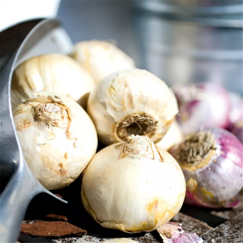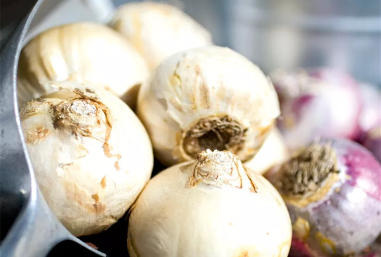 Je größer die Blumenzwiebel ist, desto üppiger fällt in der Regel auch die Blüte aus. Daher lohnt es sich nicht nur kleine (und damit günstigere) Blumenzwiebeln in den Einkaufskorb zu legen, denn schließlich haben wir lange Freude an den großen Blüten! Allerdings gibt es beim Kauf der Zwiebeln noch mehr zu beachten: Sie dürfen auf keinen Fall weich oder gar matschig sein, sondern bitte schön fest und glatt. Es sollten außerdem keine grünen Austriebe zu sehen sein und schon gar keine Schimmelspuren.