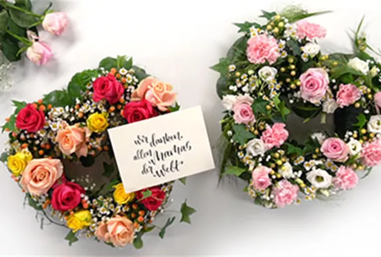Über liebevoll selbstgemachte Geschenke freut sich wohl jede Mama zum Muttertag. Eine wunderschöne Möglichkeit, danke zu sagen, ist ein Gesteck in Herzform – am besten natürlich mit den Lieblingsblumen der Mutti. Dazu braucht es nichts weiter als unterschiedlich große Blumen, z. B. Rosen und Kamille, und ein Herz aus Steckschaum. Auch ohne viel Fingerspitzengefühl entstehen so schnell individuelle Kunstwerke, die garantiert Freude bereiten.