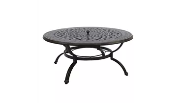 Dieser Tisch besteht aus Aluminiumguss.Des weiterm hat der Tisch einen Feuereinsatz in der Mitte, dort können Sie bei kühleren Temperaturen ein kleines Feuer entfachen und die Natur genießen. Möbel aus Aluminiumguss sind sehr pflegeleicht und wetterfest. Diese Möbel sind rostfrei und verfärben sich auch bei Sonneneinstrahlung nicht. Die Möbel haben einen rustikalen Stil und lassen sich gut untereinander kombinieren. Durch die vielen verschieden Ausführungen finden Sie immer die passende Kombination für sich. Zusätzlich können Sie Ihr Produkt auch mit der passenden atmungsaktiven Schutzhülle von Aerocover vor Witterungseinflüssen schützen. Der Tisch hat einen Durchmesser von 121 cm und eine Höhe von 49 cm.