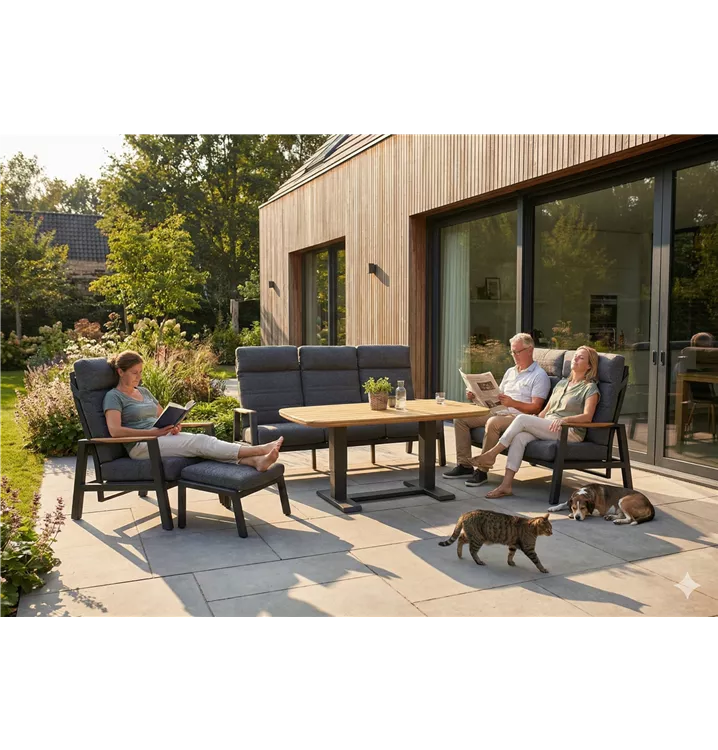 Aluminium anthrazitTextilene Kissen anthrazitTeakarmlehnen74x88x104,5 cm